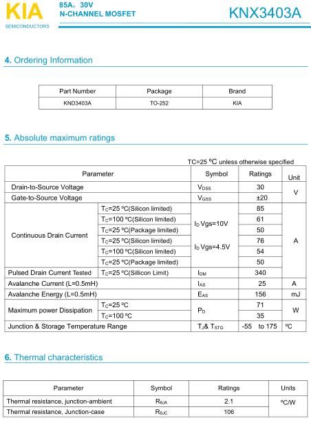 無(wú)人機(jī)MOS管 3403A 85A?/30V?型號(hào)參數(shù)規(guī)格書(shū)-原廠直銷(xiāo) 免費(fèi)送樣-KIA MOS管