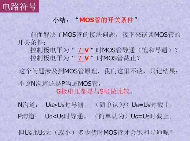 MOS管為壓控元件,你只要加到它的壓控元件所需電壓就能使它導(dǎo)通,它的導(dǎo)通就像三極管在飽和狀態(tài)一樣,導(dǎo)通結(jié)的壓降最小.這就是常說的精典是開關(guān)作用.去掉這個控制電壓經(jīng)就截止. MOS管 MOS管的英文全稱叫MOSFET(Metal Oxide Semiconductor Field Effect Transistor),即金屬氧化物半導(dǎo)體型場效應(yīng)管,屬于場效應(yīng)晶體管中的絕緣柵型。因此,MOS管有時(shí)被稱為場效應(yīng)管。在一般電子電路中,MOS管通常被用于放大電路或開關(guān)電路。而在主板上的電源穩(wěn)壓電路中,MOSFET扮演的角色主要是判斷電位,它在主板上常用“Q”加數(shù)字表示。