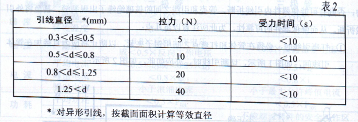 ①印剛電路板上安裝孔的間隔要與弓I線(xiàn)的問(wèn)隔一致,插入時(shí)不要硬拉引線(xiàn),以免造成引線(xiàn)秘管殼同的過(guò)大1萱力,見(jiàn)圖4.沿引線(xiàn)軸方向的引線(xiàn)拉力與弓l線(xiàn)直徑有關(guān),操作時(shí)不應(yīng)超過(guò)表二的規(guī)定值