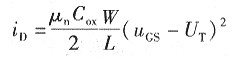 式中,UT為開啟電壓(或閾值電壓);μn為溝道電子運(yùn)動的遷移率;Cox為巾位面積柵極電容;W為溝道寬度;疋為溝道長度;W/L為MOSFET的寬長比。在MOSFET集成電路設(shè)計(jì)中,寬長比是一個極為重要的參數(shù)。