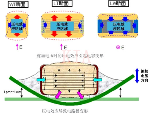 如圖2所示,陶瓷的強(qiáng)介電性會(huì)引起壓電效應(yīng),疊層電容在施加交流電之后,會(huì)在疊層方向(Z軸)發(fā)生伸縮。