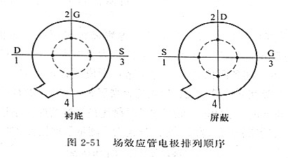 目前常見(jiàn)的MOS型和結(jié)型場(chǎng)效應(yīng)管的電極排列次第,如圖2-51所示。