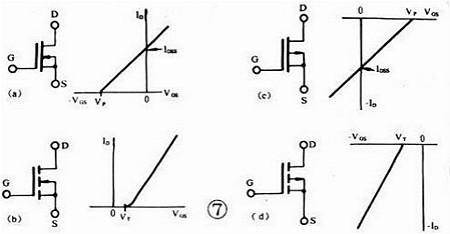 耗盡型:N溝道(圖7a);P溝道(圖c);