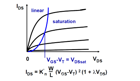 強(qiáng)反型區(qū)又叫平方律區(qū),因為電流IDS表達(dá)式滿足: