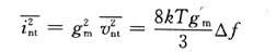 圖1. 34(b)是用與不含熱噪聲的M()S晶體管并聯(lián)電流源表示的熱噪聲模型。這時(shí)MOS晶體管的熱噪聲電流由下式出: