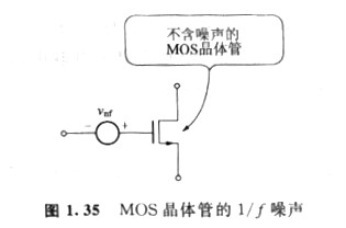 如圖1. 35所示,MOS晶體管1/f噪聲可以用不含噪聲的MOS晶體管以及接在柵極上的電壓源來表示,這時(shí)柵極換算噪聲電壓tνnf用下式給出: