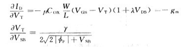 CMOS模仿電路中主要運(yùn)用的下作區(qū)域是強(qiáng)反型的飽和區(qū)。表2.1列出這個(gè)工作區(qū)域中的小信號(hào)參數(shù)。