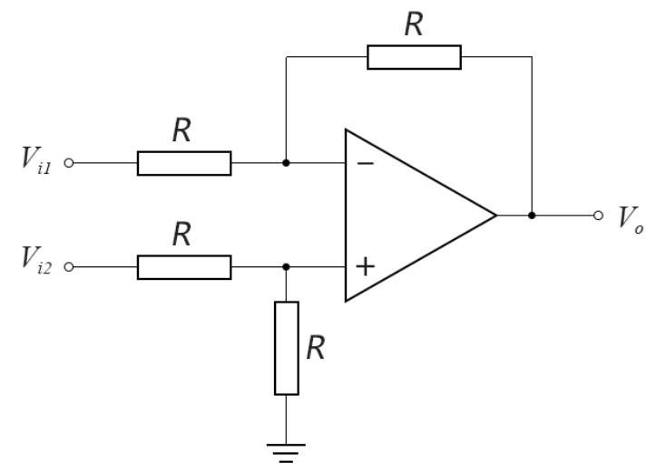 因此,上面的差分放大器又被稱為減法器,我們重畫差分減法器如下: