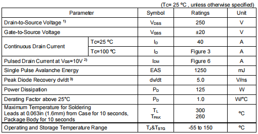 漏源電壓:250V