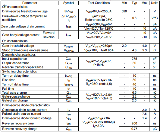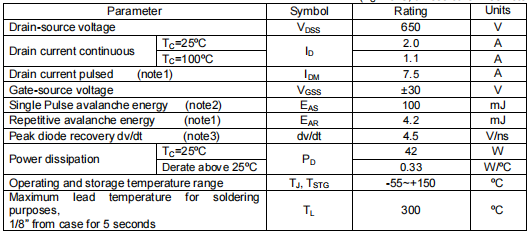 高頻開關(guān)電源mos管,2a650v,2n65場效應(yīng)管參數(shù)引腳圖-KIA MOS管