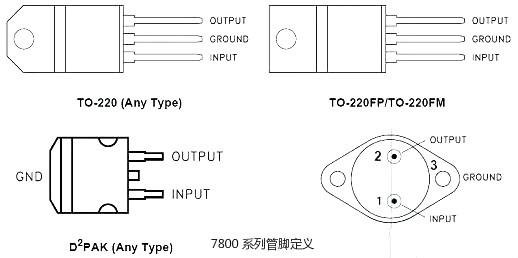 (2) 三端穩(wěn)壓器的型號規(guī)格和管腳分布。