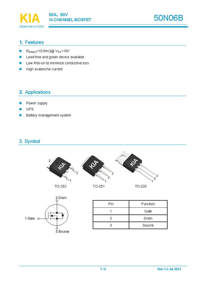參數(shù): ID(A): 50 BVDSS(V): 60 RDS(ON): 10.5mΩ Qg(nC): 50 Package: TO-251.TO-252.TO-220