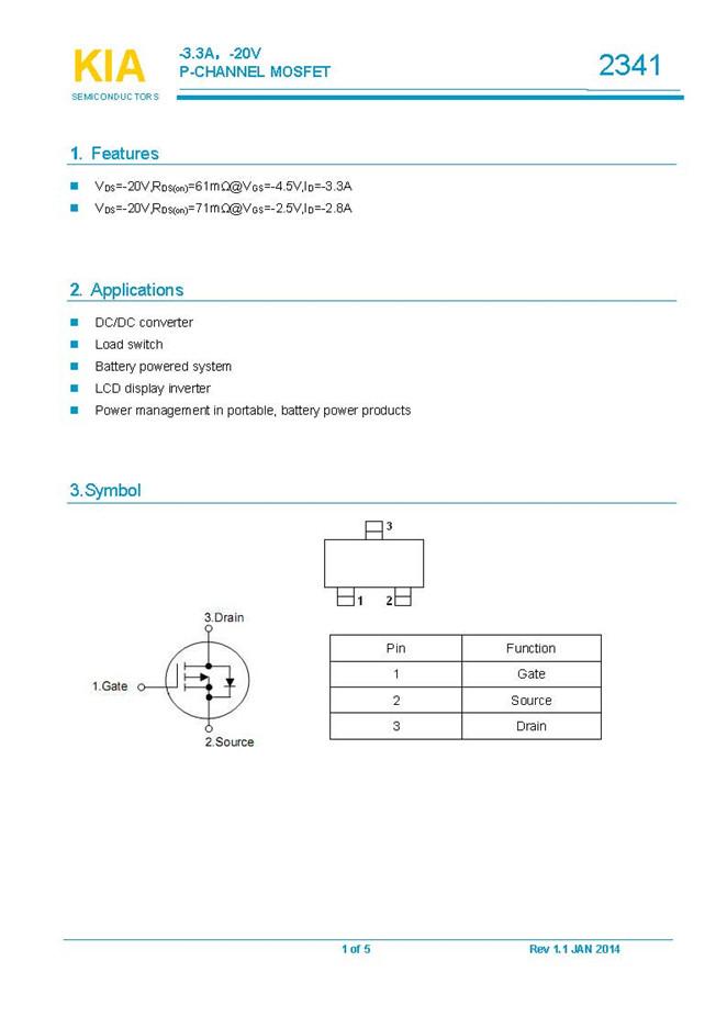 參數(shù): ID(A): -3.3 BVDSS(V): -20 RDS(ON): 0.061 Qg(nC): 13 Package: SOT-23