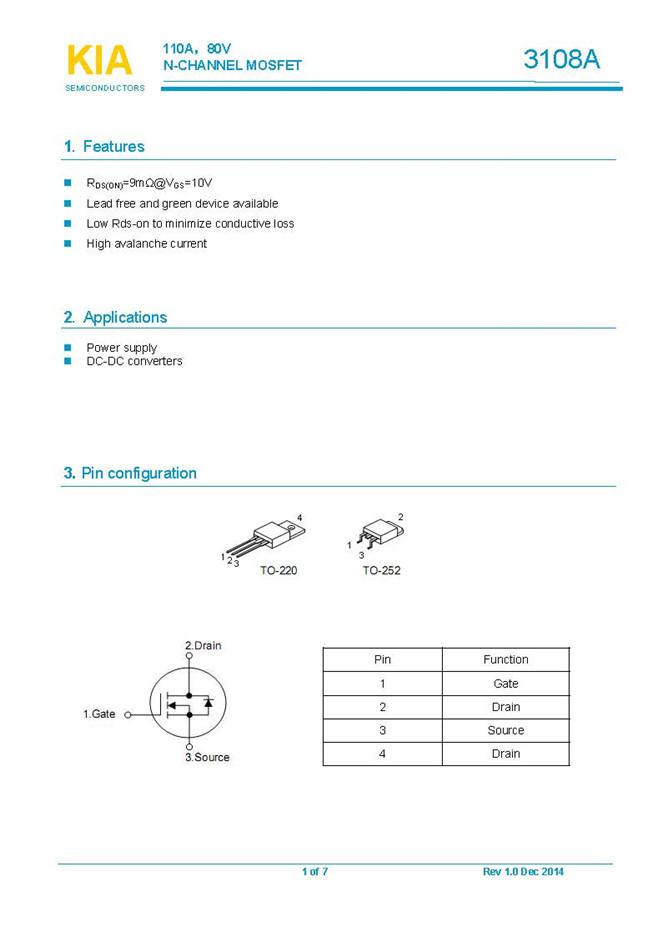 參數(shù): ID(A): 110 BVDSS(V): 80 RDS(ON): 0.012 Qg(nC): 76 Package: TO-220 TO-252