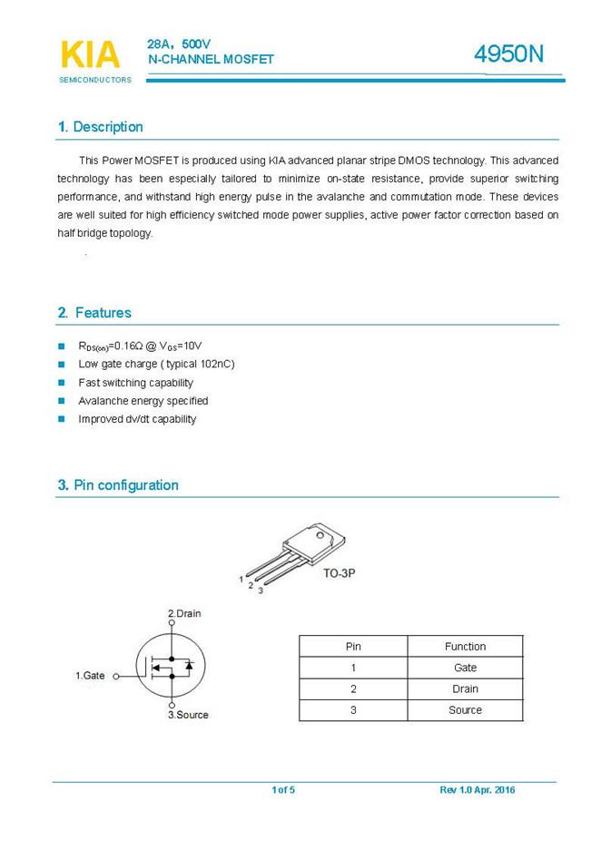 參數(shù): ID(A): 28 BVDSS(V): 500 RDS(ON): 0.16 Qg(nC): 102 Package: TO-3P