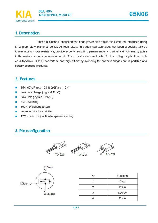 參數(shù): ID(A): 65 BVDSS(V): 60 RDS(ON): 0.016 Qg(nC): 40 Package: TO-220、TO-220F、TO-263