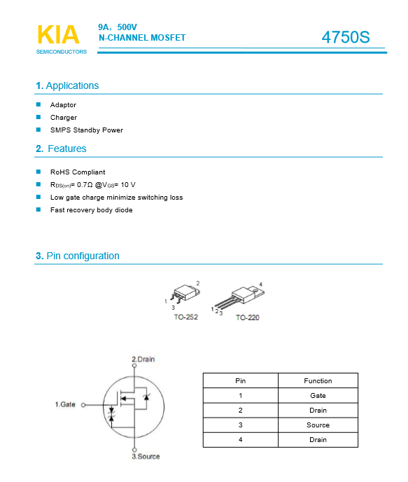 參數(shù): ID(A): 9 BVDSS(V): 500 RDS(ON): 0.7 Qg(nC): 24 Package: TO-252 TO-220