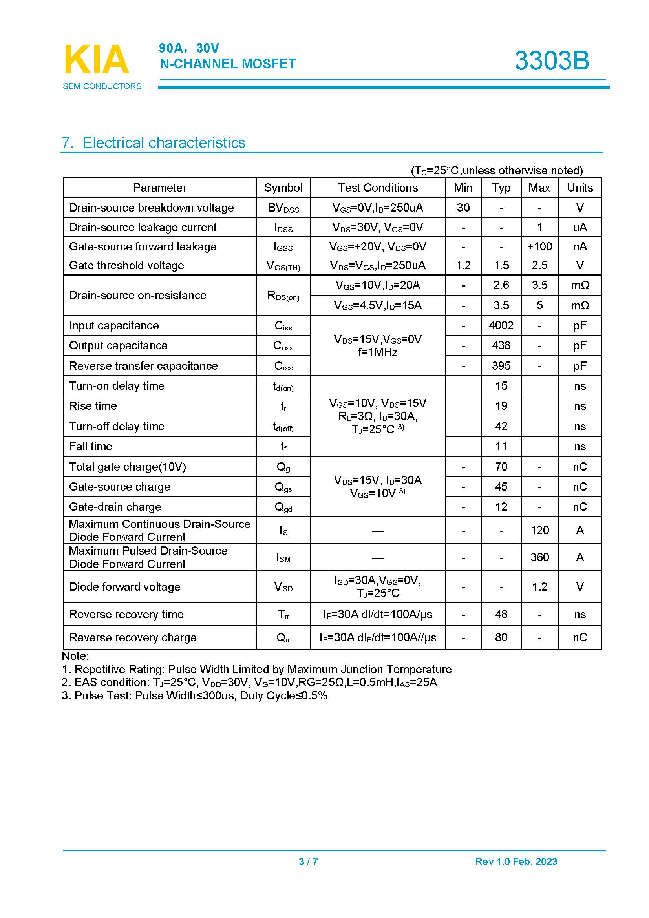 參數: ID(A): 90 BVDSS(V): 30 RDS(ON): 2.6 Qg(nC): 70 Package: DFN5*6