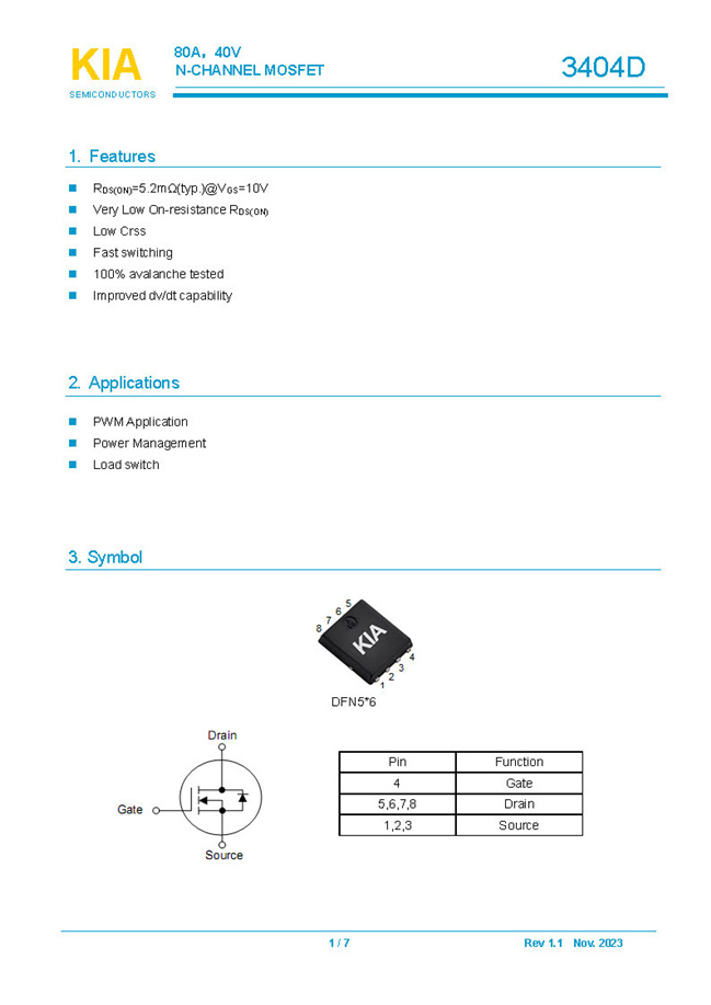 參數(shù): ID(A): 80    BVDSS(V): 40    RDS(ON): 5.2    Qg(nC): 58    Package: DFN5*6