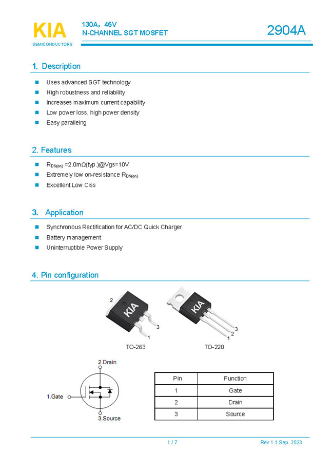 參數(shù): ID(A): 130 BVDSS(V): 45 RDS(ON): 2 Qg(nC): 60 Package: TO-263.TO-220