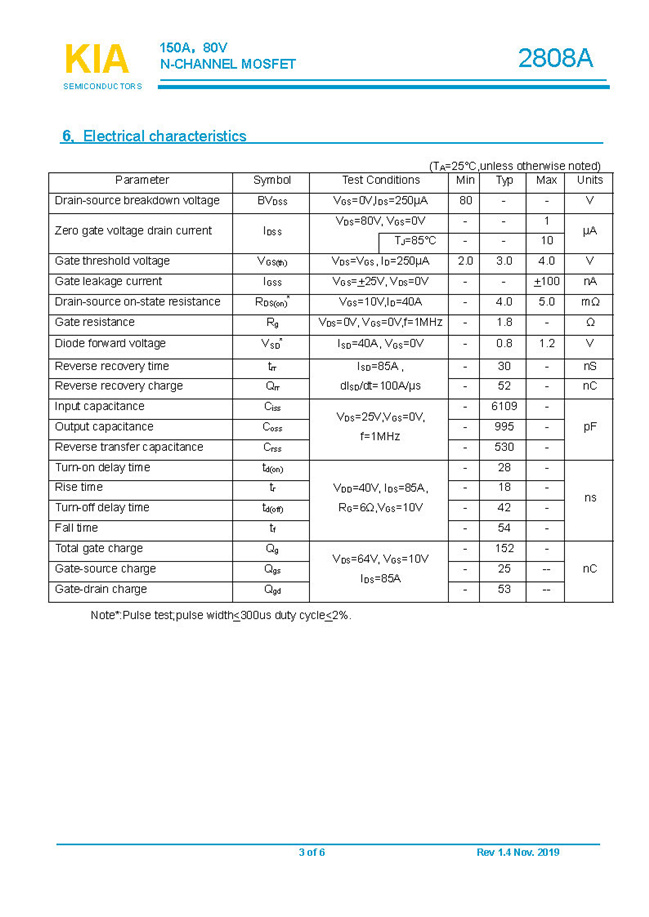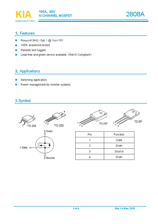 參數(shù): ID(A): 150 BVDSS(V): 80 RDS(ON): 4.0mΩ Qg(nC): 152 Package: TO-220.263.247.3P