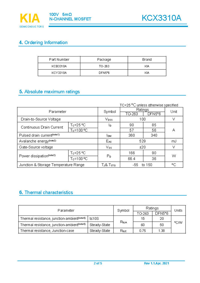 參數(shù): ID(A): 90/85 BVDSS(V): 100 RDS(ON): 5mΩ Qg(nC): 66 Package: DFN5*6 TO-263