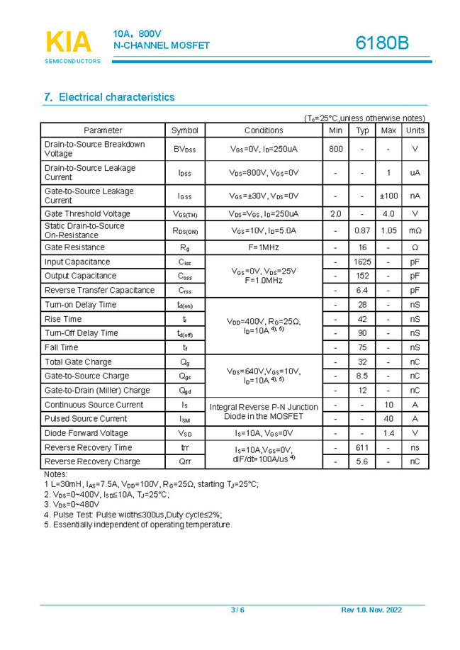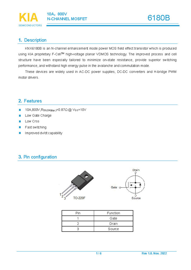 參數(shù): ID(A): 10 BVDSS(V): 800 RDS(ON): 0.87Ω Qg(nC): 32 Package: TO-220F