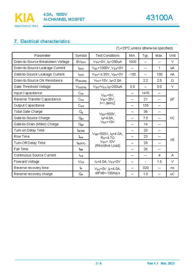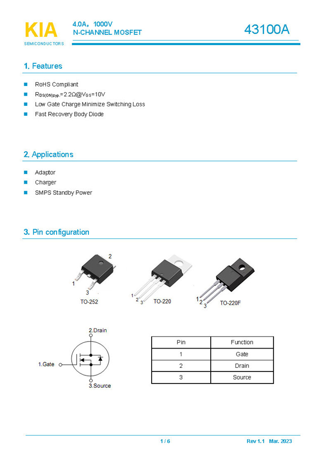參數(shù): ID(A): 4 BVDSS(V): 1000 RDS(ON): 2.2Ω Qg(nC): 36 Package: TO-252.TO-220.TO-220F