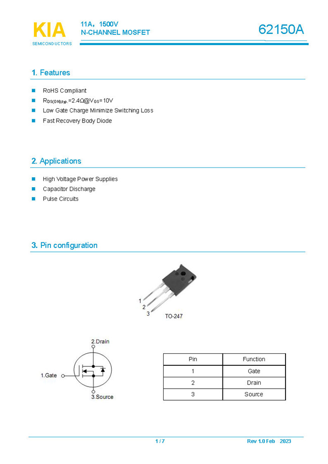 參數(shù): ID(A): 11 BVDSS(V): 1500 RDS(ON): 2.4Ω Qg(nC): 83.2 Package: TO-247
