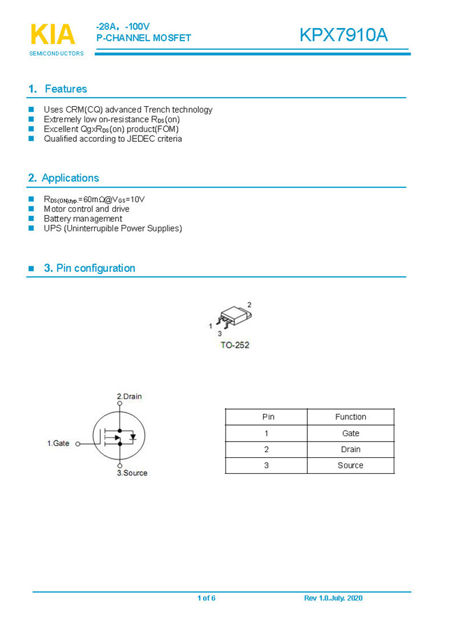 參數(shù): ID(A): -28 BVDSS(V): -100 RDS(ON): 60mΩ Qg(nC): 52 Package: TO-252
