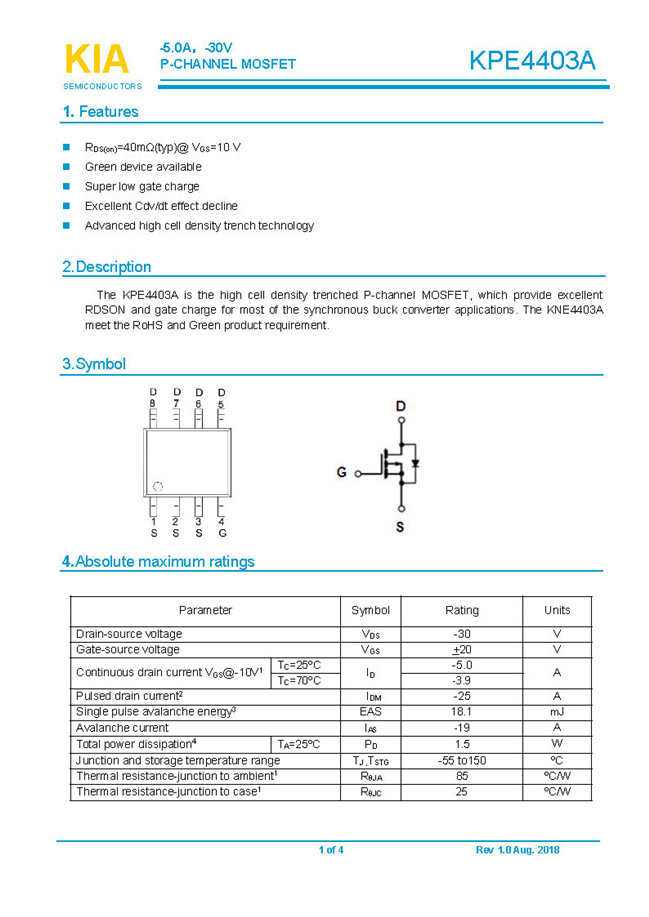 參數(shù): ID(A): -5    BVDSS(V): -30    RDS(ON): 40mΩ    Qg(nC): 6.5    Package: SOP-8