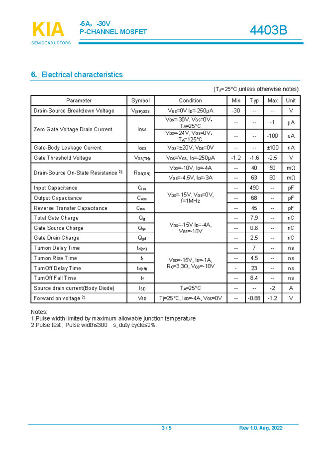 參數(shù): ID(A): -5 BVDSS(V): -30 RDS(ON): 40mΩ Qg(nC): 7.9 Package: SOP-8