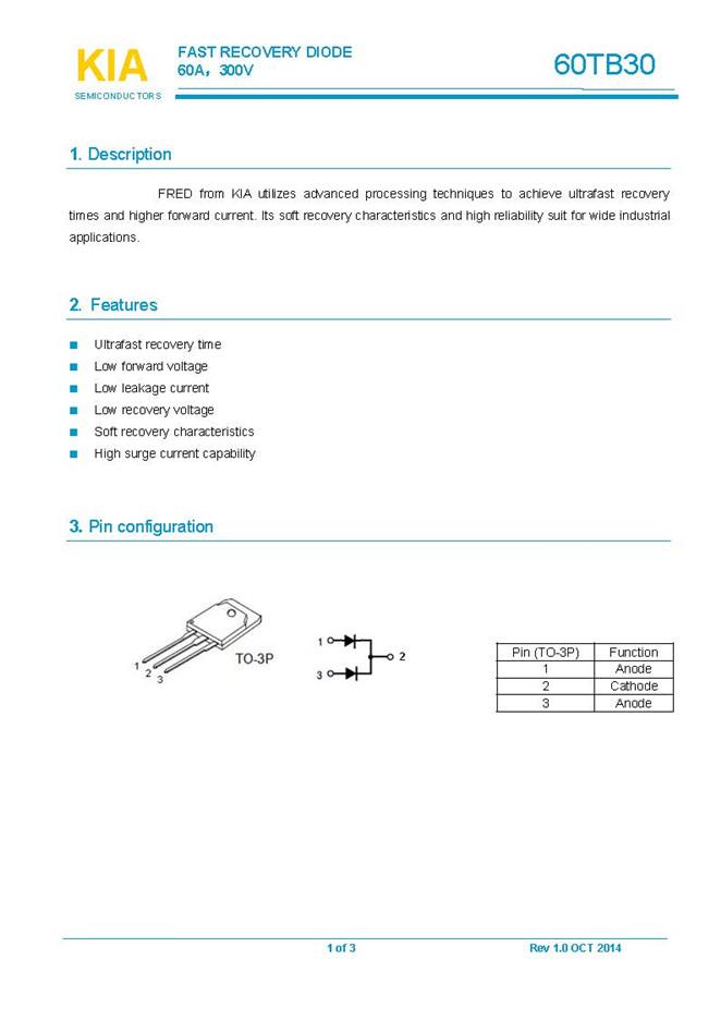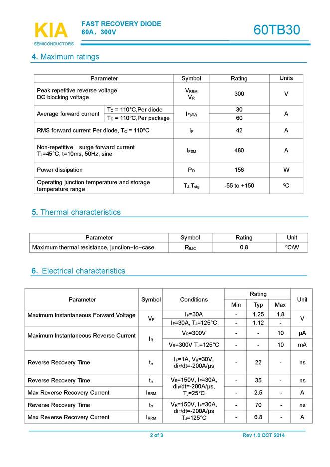 參數(shù): VR(V): 300V IF(A): 60A Trr(ns): 22NS Package: TO-3P