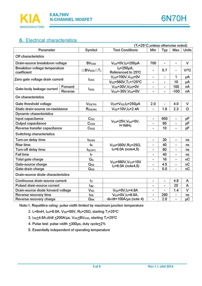 參數(shù): ID(A): 5.8 BVDSS(V): 700 RDS(ON): 2.3 Qg(nC): 16 Package: TO-251、TO-252、TO-220F