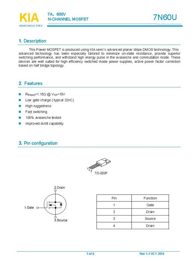 參數(shù): ID(A): 7 BVDSS(V): 600 RDS(ON): 1.4 Qg(nC): 22 Package: TO-220F