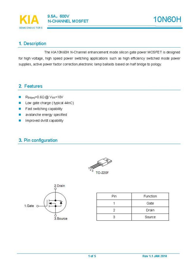 參數(shù): ID(A): 9.5 BVDSS(V): 600 RDS(ON): 0.73 Qg(nC): 57 Package: TO-220F TO-220