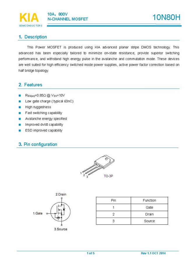 參數(shù): ID(A): 10 BVDSS(V): 800 RDS(ON): 1.1 Qg(nC): 63 Package: TO-3P TO-220F
