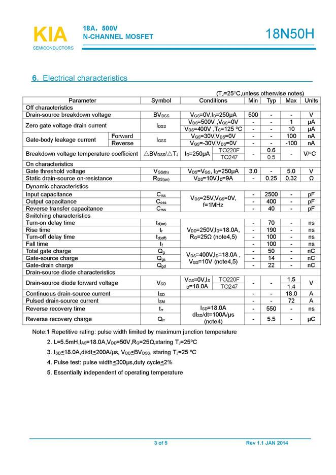參數(shù): ID(A): 18 BVDSS(V): 500 RDS(ON): 0.32 Qg(nC): 50 Package: TO-220F、TO-247