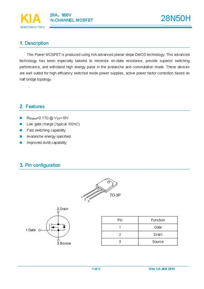 參數(shù): ID(A): 28 BVDSS(V): 500 RDS(ON): 0.2 Qg(nC): 102 Package: TO-3P、TO-247